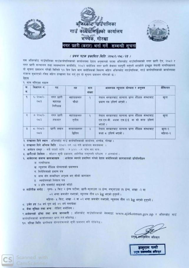 नगर प्रहरी (करार) भर्ना गर्ने सम्बन्धी सूचना ।