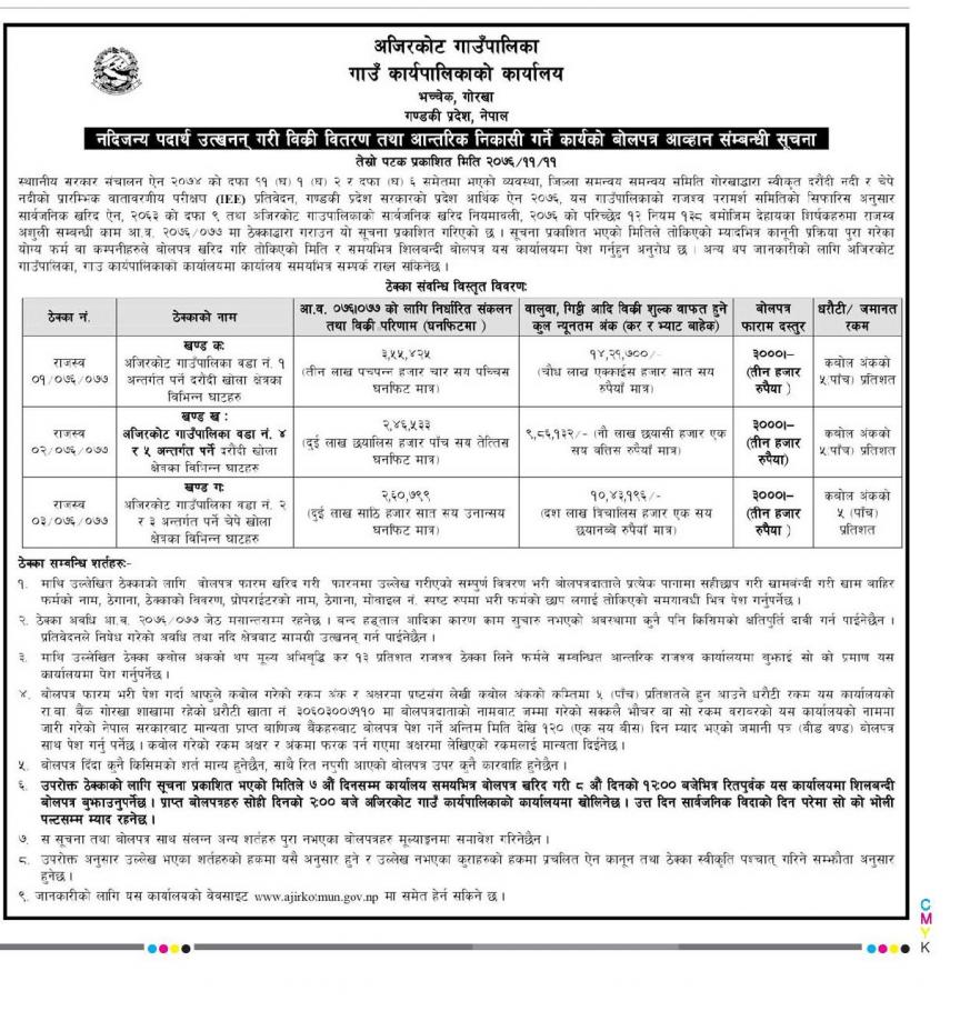 नदिजन्य पदार्थ उत्खनन् गरी विक्री वितरण तथा अन्तरिक निकासी गर्ने कार्यको बोलपत्र आव्हान सम्बन्धी सूचना