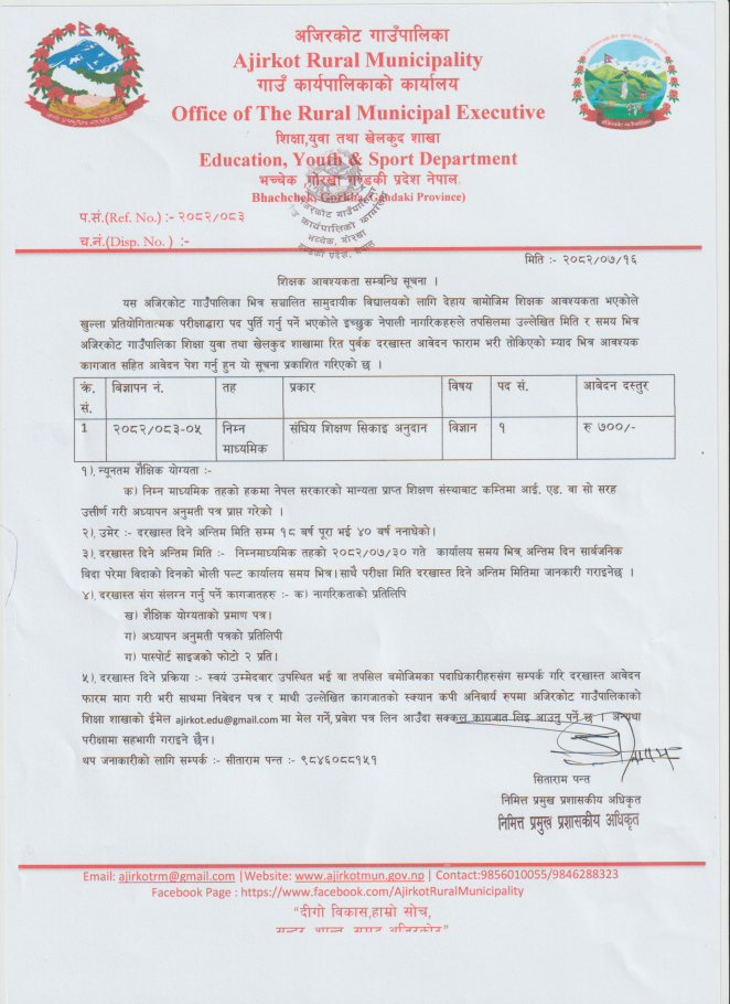 ajirkotrm@gmail.com ; info@ajirkotmun.gov.np