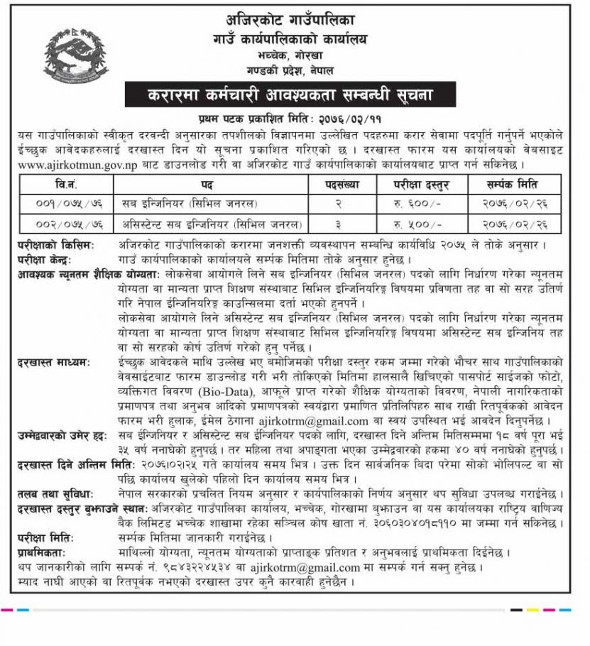 करारमा कर्मचारी आवश्यकता सम्बन्धि सूचना अनुसूची फारम सहित