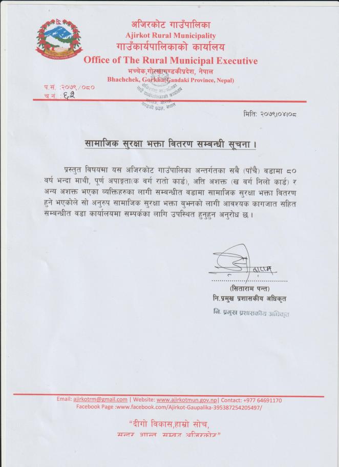 » सामाजिक सुरक्षा भत्ता वितरण सम्बन्धी सुचना ।