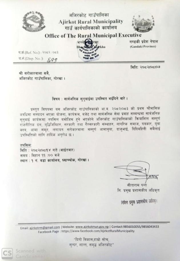सार्वजनिक सुनुवाईमा उपस्थित भईदिनु हुन।