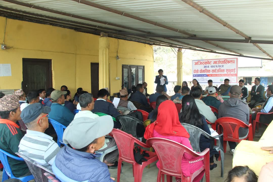 अजिरकोट गाउँपालिकाको आ.व. २०८१/८२ को दोस्रो चौमासिक सार्वजनिक सुनुवाई कार्यक्रम।