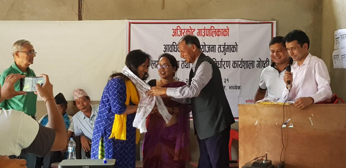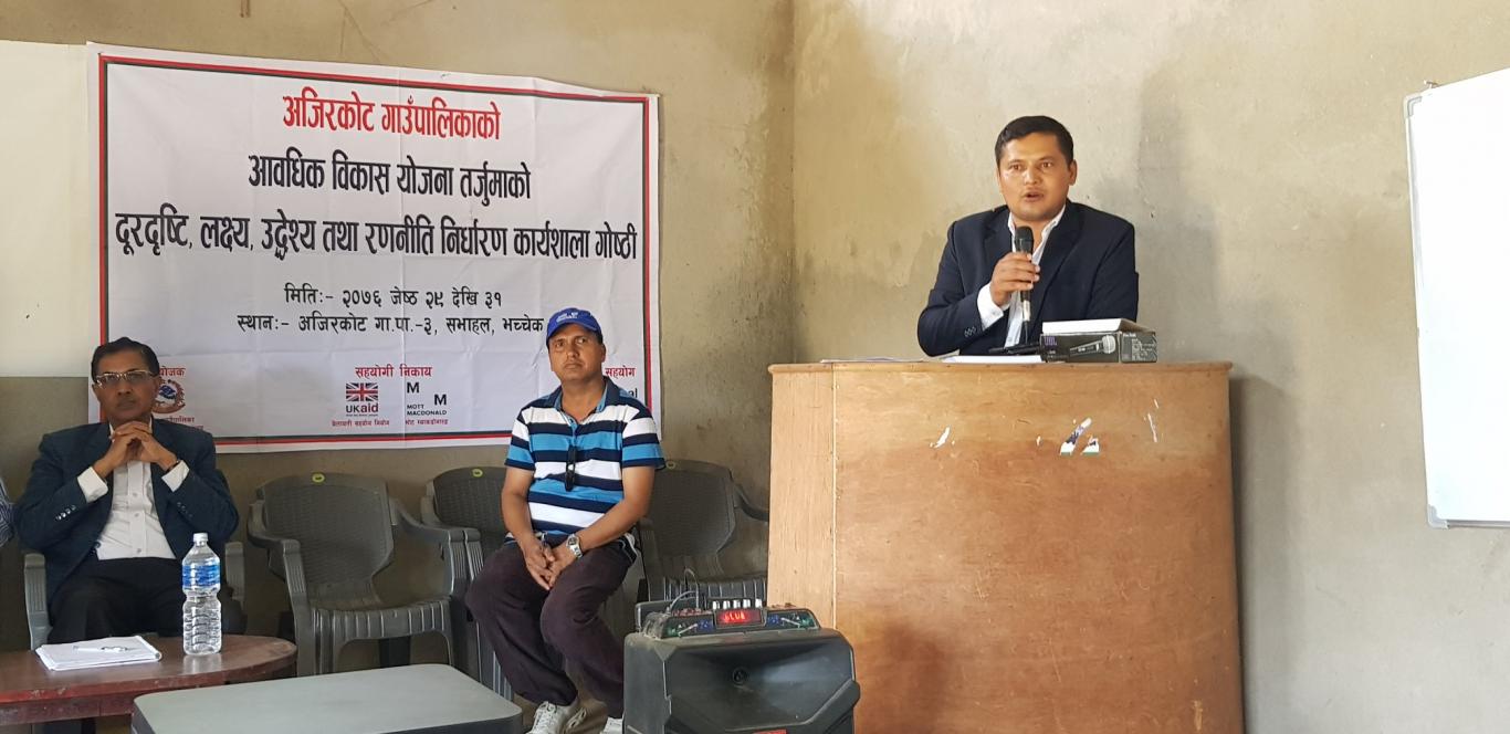 अजिरकोट गाउँपालिकाको पार्श्वर्चित्र तथा प्रथम पञ्चबर्षिय योजना तर्जुमाको क्रममा दुरदृस्टी, लक्ष्य, उद्देश्य तथा रणनीति निर्धारण कार्यशाला गोष्ठीमा छलफल हुदै गर्दा सहभागीहरु |