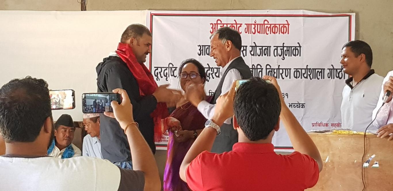 Home » अजिरकोट गाउँपालिकाको पार्श्वर्चित्र तथा प्रथम पञ्चबर्षिय योजना तर्जुमाको क्रममा दुरदृस्टी, लक्ष्य, उद्देश्य तथा रणनीति निर्धारण कार्यशाला गोष्ठीमा छलफल हुदै गर्दा सहभागीहरु |